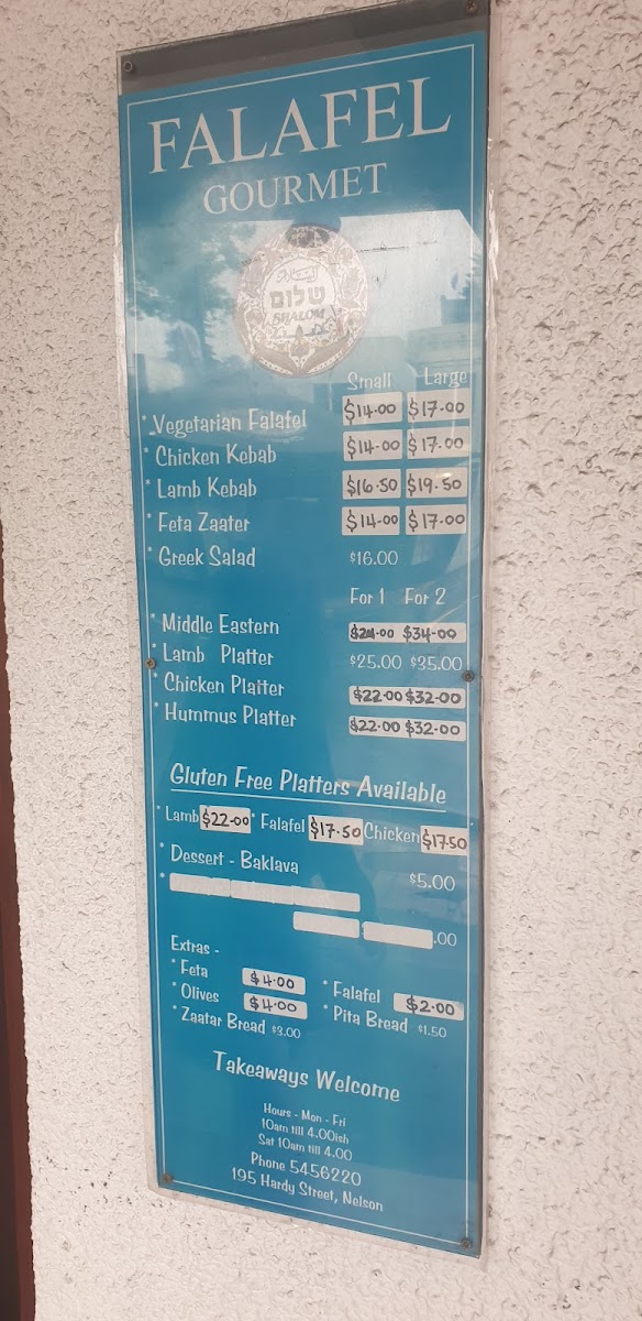 Welcome to Falafel Gourmet, a hidden gem nestled at 195 Hardy Street, Nelson. This delightful cafeteria offers an exquisite menu that celebrates the richness of Middle Eastern cuisine. From the first bite, patrons rave about the bold yet balanced flavors, expertly crafted using homemade ingredients rather than commercial substitutes.